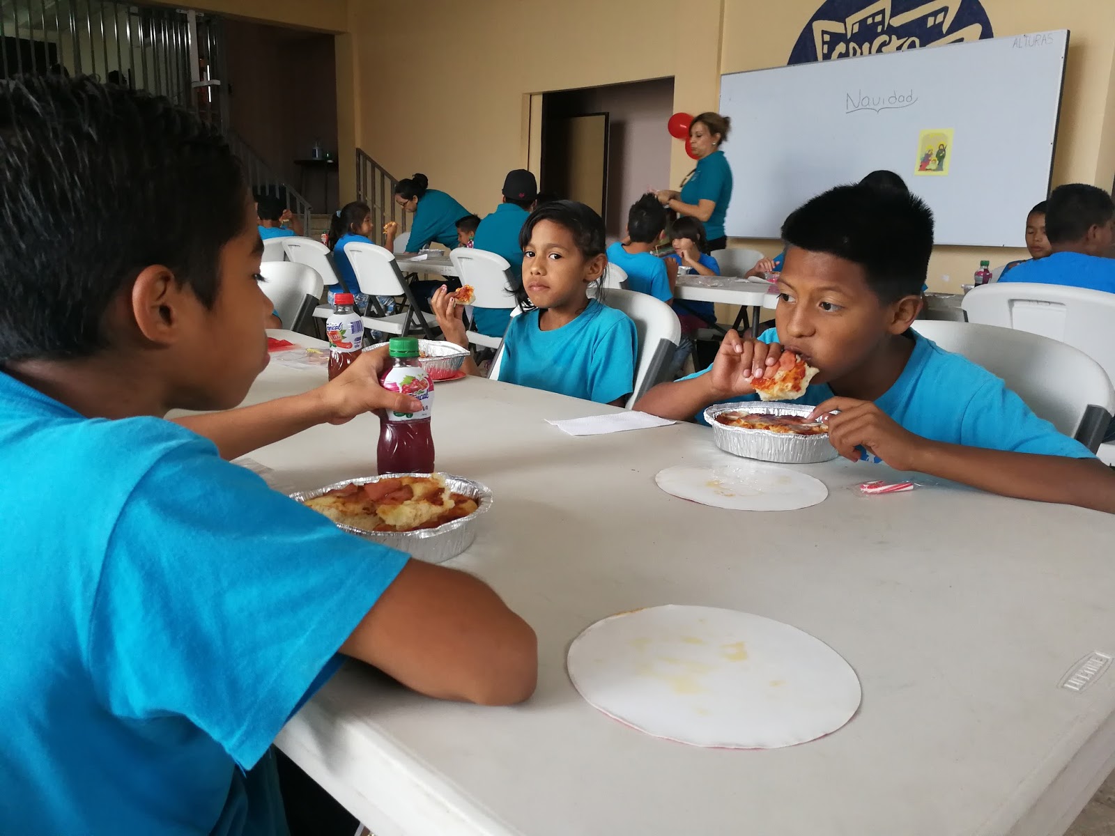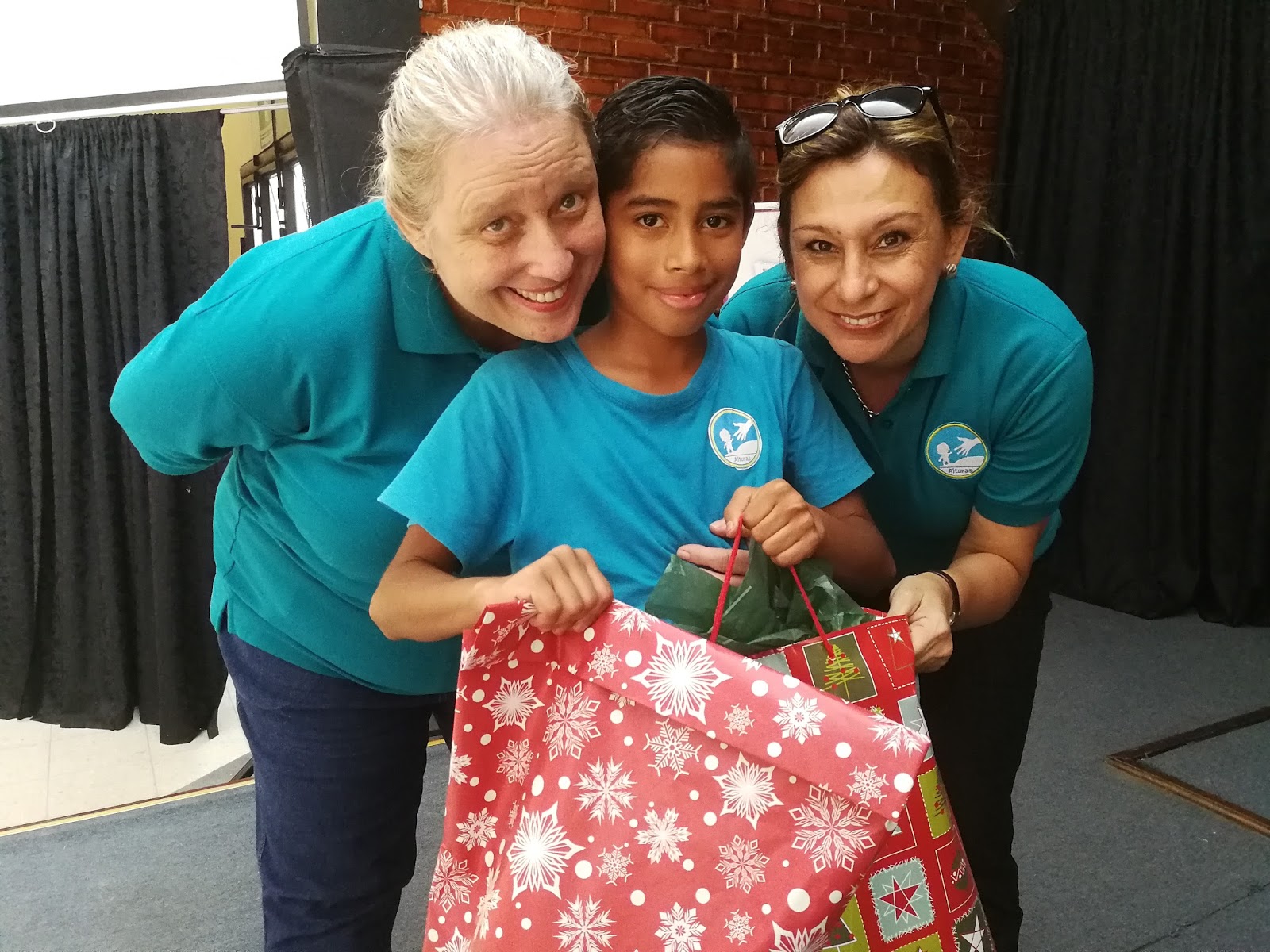 Today was our very awaited end of year party. Many of our kids’ parents will not be able to celebrate Christmas with gifts and food. Thus, it makes us happy to be able to give them gifts and the food that they like so much. All of this is thanks to our sponsors that kindly sacrificed a little more money so that the kids could have a different Christmas. Something that we do that is always important is the reading of God’s Word, and afterward, Teacher Damaris, told us about the true meaning of Christmas that is having Jesus in our hearts.